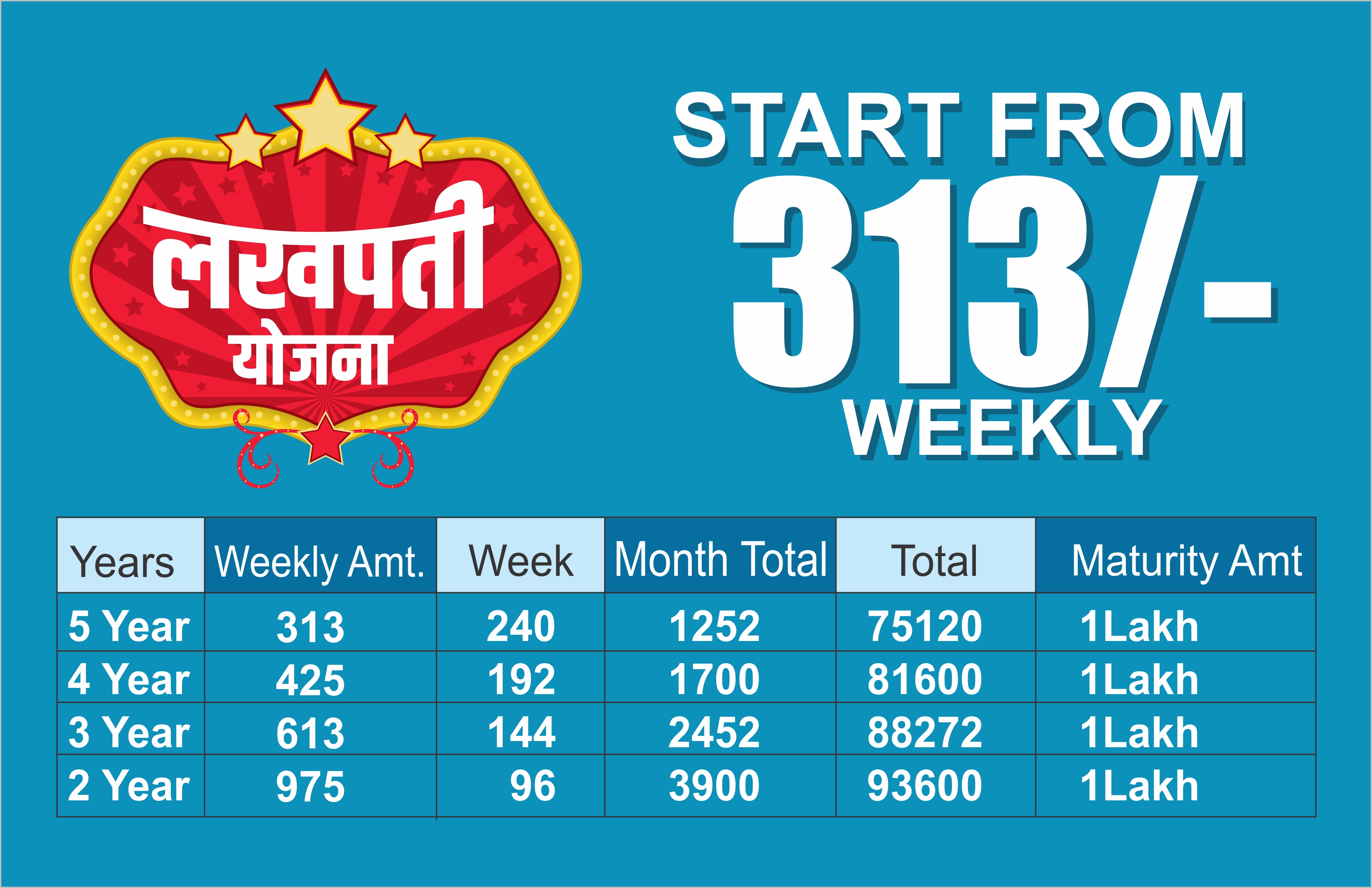 Neexa Lakhpati Yojana Schemes allow customers an opportunity to build up their savings through regular monthly deposits as well as weekly deposits of a fixed sum over a fixed period of time.